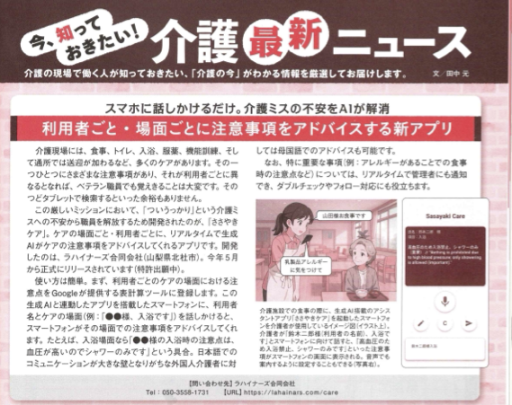 - 「ささやきケア」は、この課題を解決するために開発された、 生成AI搭載の介護用アシスタントアプリです。